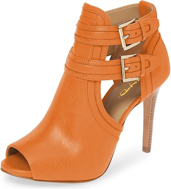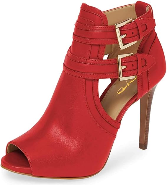 A show-stopping peep toe short bootie designed to turn heads. The lean silhouette is made even sleeker with a wrapped heel, while two buckle-fastened straps lend a polished finish.